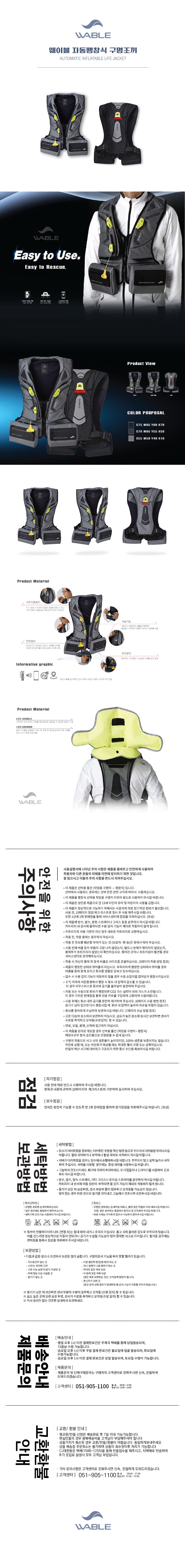 WABLE 자동팽창식 구명조끼(낚시용)